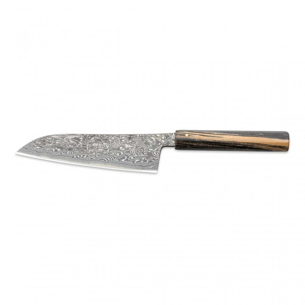 Hinoura Tsukasa FAN OUT Hinoura Tsukasa 16.5cm Santoku Black Mushin Damascus Black Handle