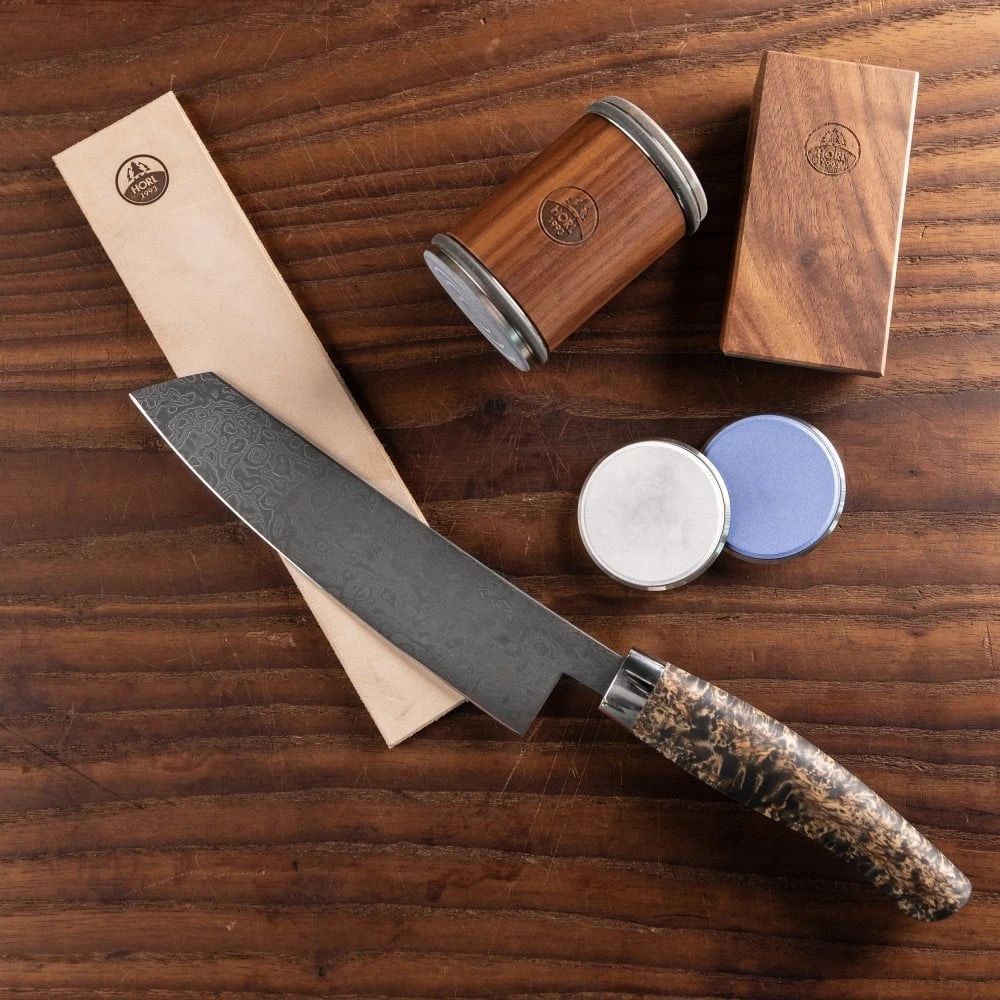 The Horl Finishing leather is used for the final polish of blades sharpened using a Horl2 sharpener. The vegetable-tanned cowhide strop removes any residue and gives that final professional edge.